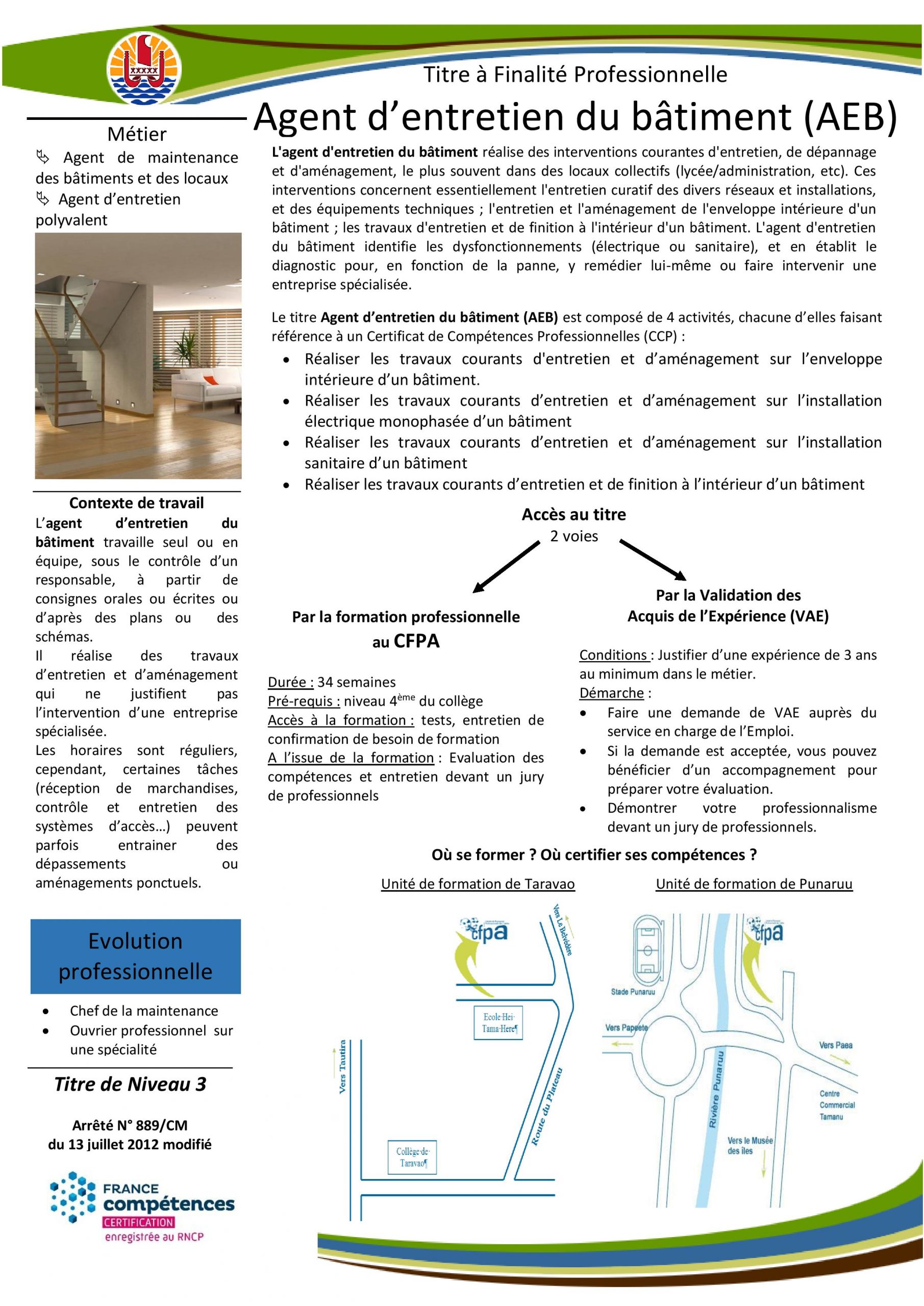 Télécharger la fiche de formation S'inscrire à l'unité de Raiatea Télécharger la fiche de formation S'inscrire à l'unité de Raiatea Besoin de renseignement ? Contactez-nous Besoin de renseignement ? Contactez-nous Où se former ? Où certifier ses compétences ? Unité de formation de Pirae - Tel : 40 50 74 50 Unité de formation de Punaruu - Tel : 40 50 75 50 Unité de formation de Taravao - Tel : 40 50 88 50 Unité de formation de Raiatea - Tel : 40 60 04 05