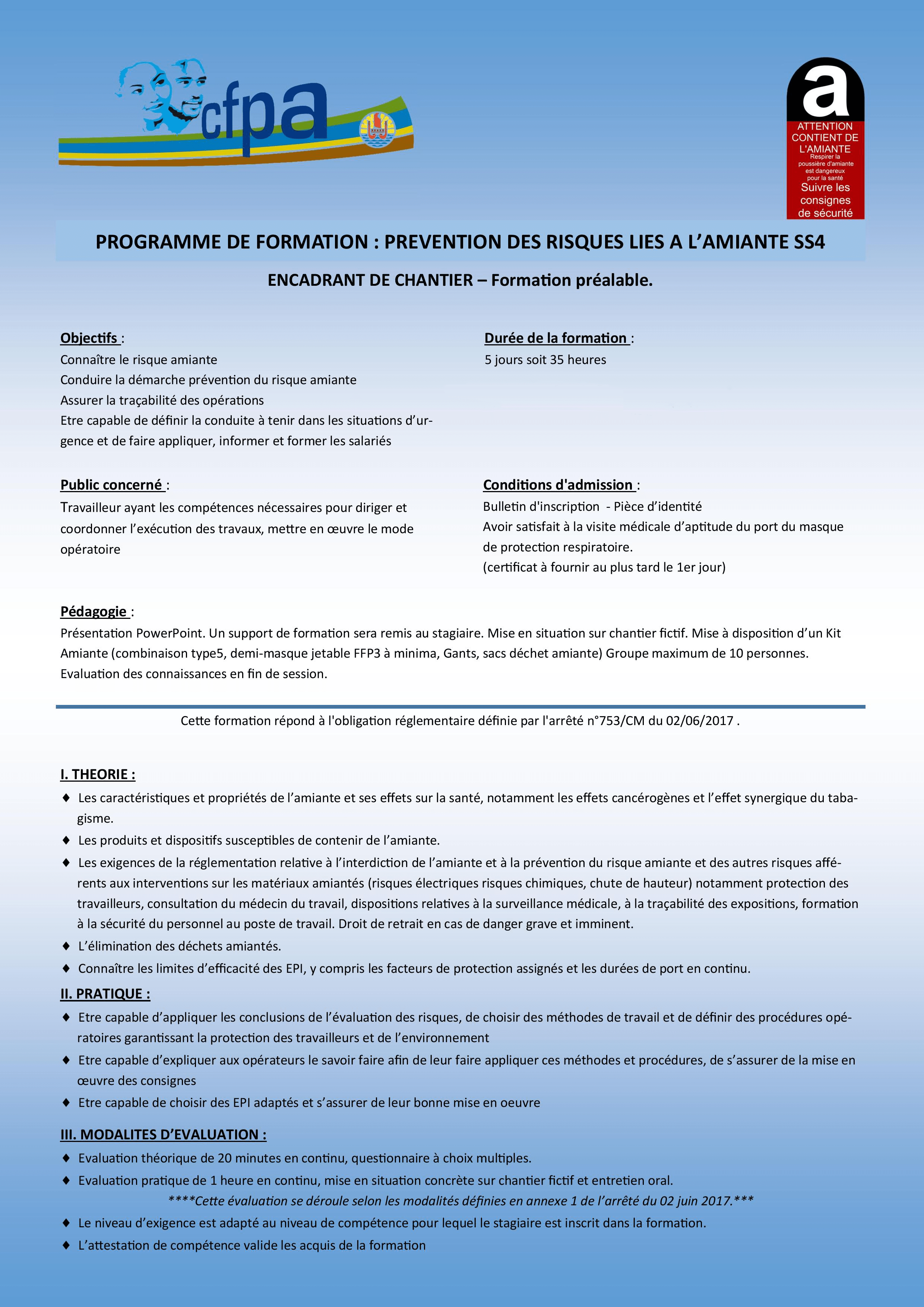 Nous ne sommes plus en mesure de réaliser la formation SS4 jusqu’à nouvel ordre.