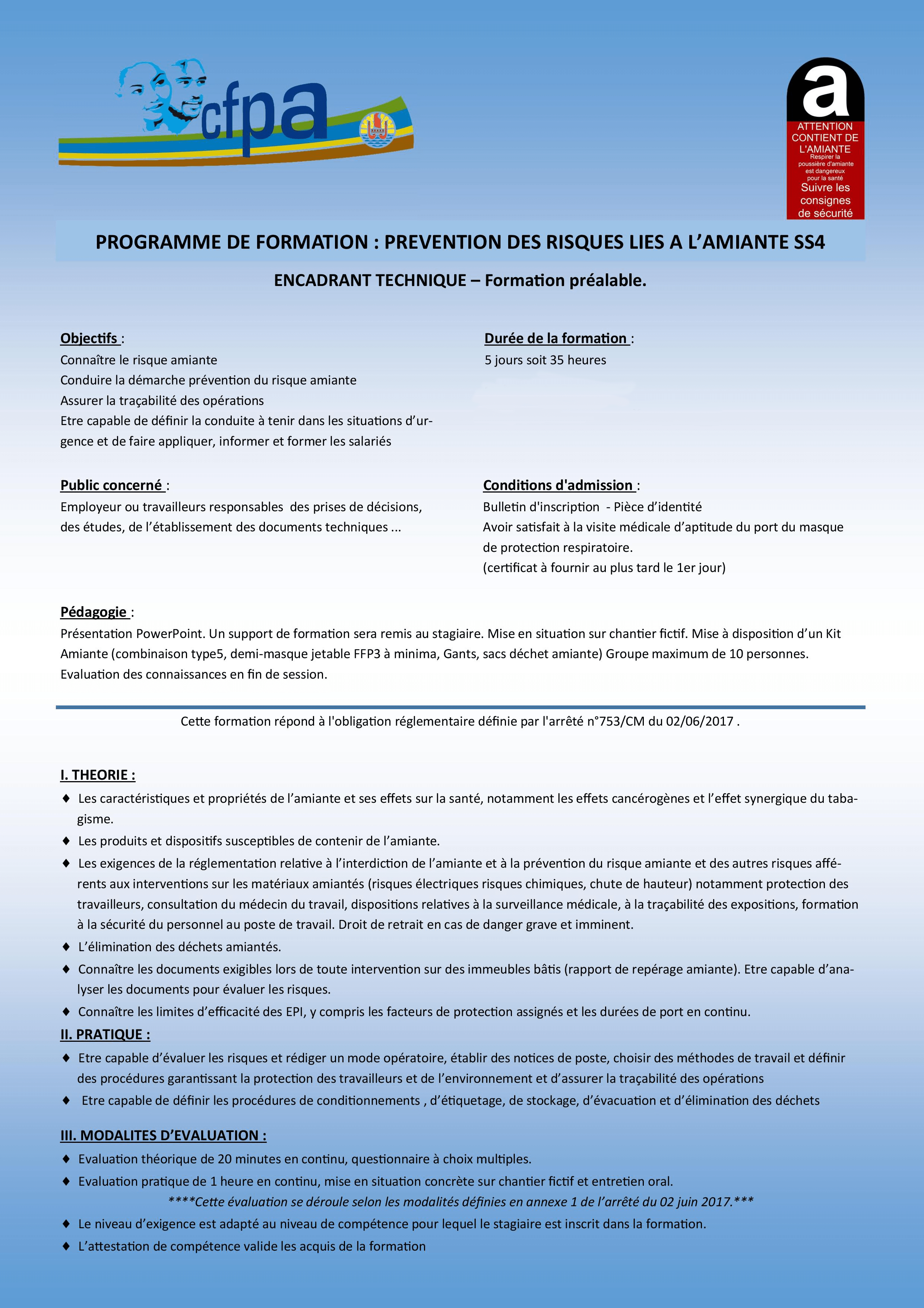 Nous ne sommes plus en mesure de réaliser la formation SS4 jusqu’à nouvel ordre. Nous ne sommes plus en mesure de réaliser la formation SS4 jusqu’à nouvel ordre. Cette formation est payante Télécharger la fiche de formation Besoin de renseignement ? Contactez-nous Besoin de renseignement ? Contactez-nous Où se former ? Où certifier ses compétences ? Unité de formation de Punaruu - Tel : 40 50 75 50