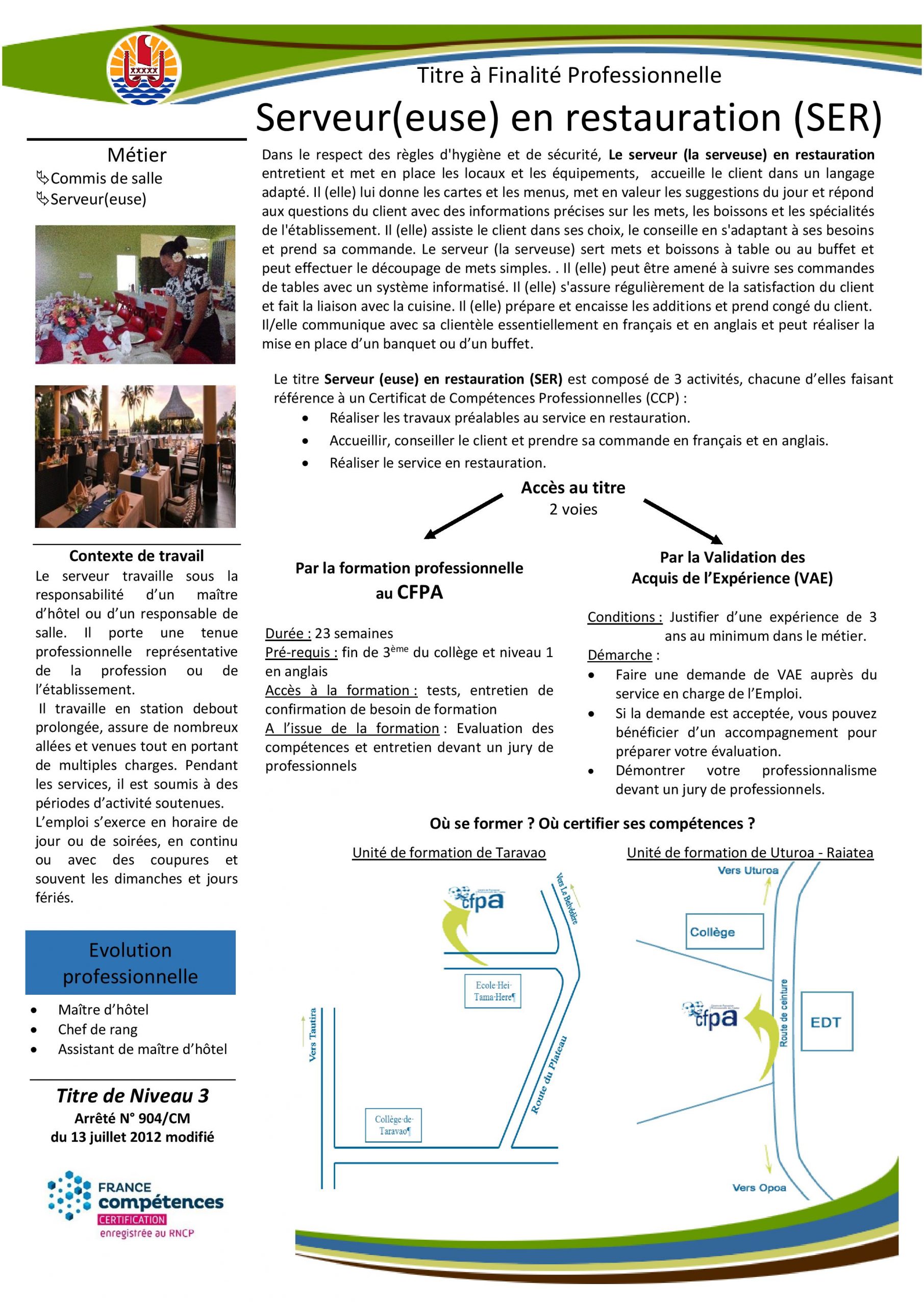 Télécharger la fiche de formation S'inscrire à l'unité de Taravao Télécharger la fiche de formation S'inscrire à l'unité de Taravao Besoin de renseignement ? Contactez-nous Besoin de renseignement ? Contactez-nous Où se former ? Où certifier ses compétences ? Unité de formation de Taravao - Tel : 40 50 88 50 Unité de formation de Raiatea - Tel : 40 60 04 05